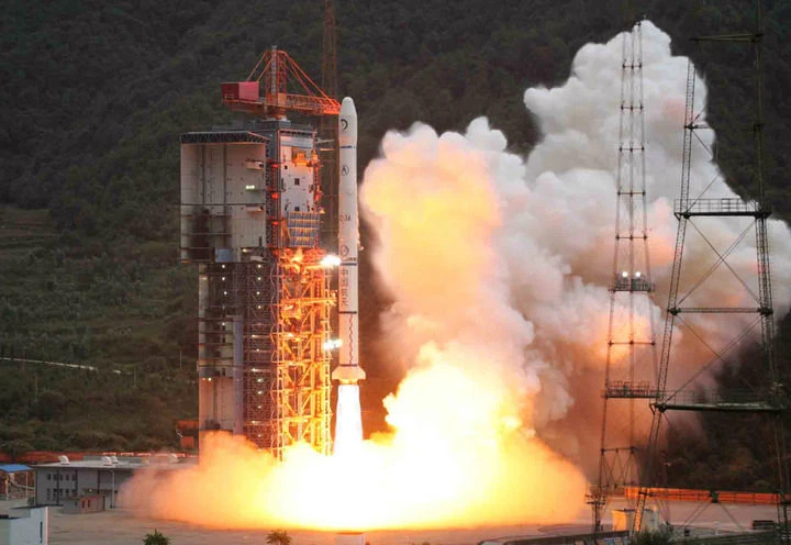 ?。玻埃埃纺辏保霸拢玻慈?,搭载着我国首颗探月卫星嫦娥一号的长征三号甲运载火箭在西昌卫星发射中心三号塔架点火发射。新华社记者 李刚 摄