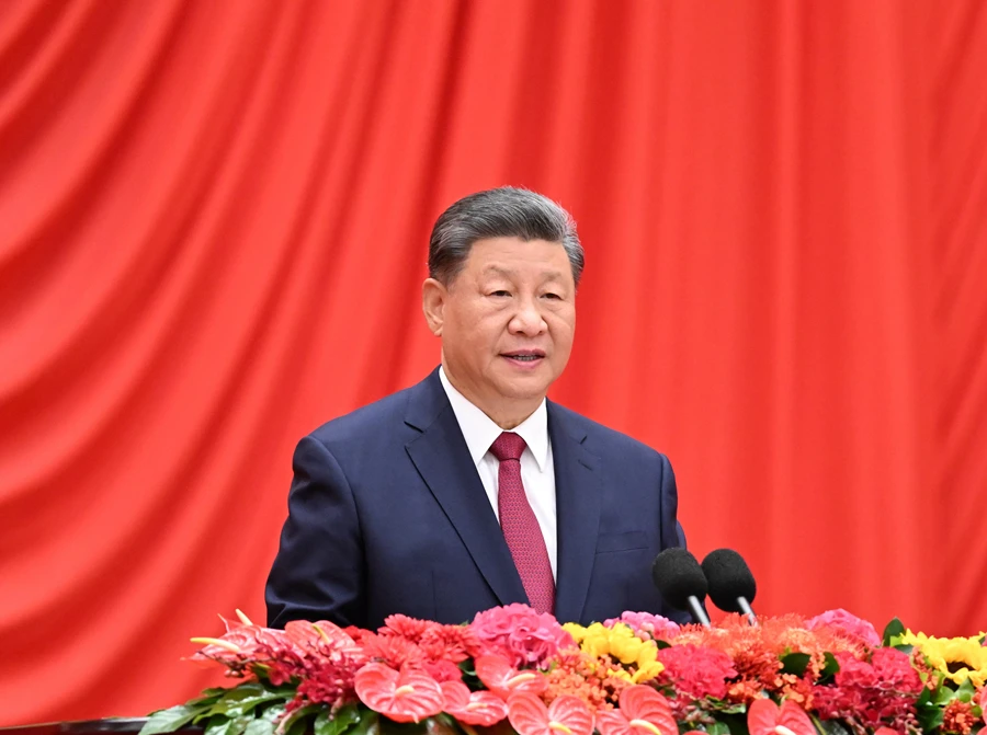 ??9月30日晚,庆祝中华人民共和国成立75周年招待会在北京人民大会堂隆重举行。中共中央总书记、国家主席、中央军委主席习近平出席招待会并发表重要讲话。新华社记者 谢环驰 摄
