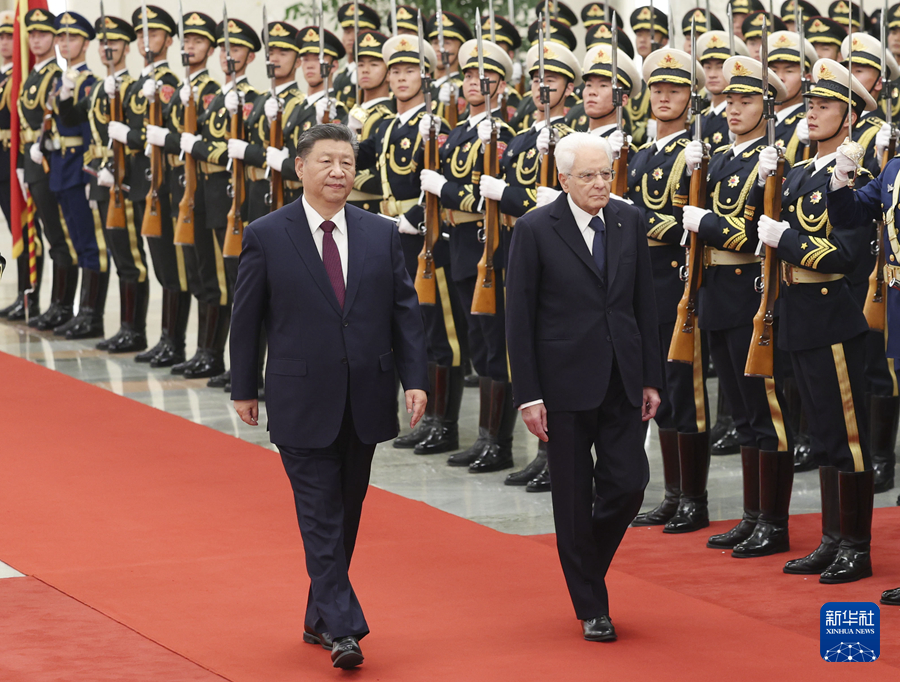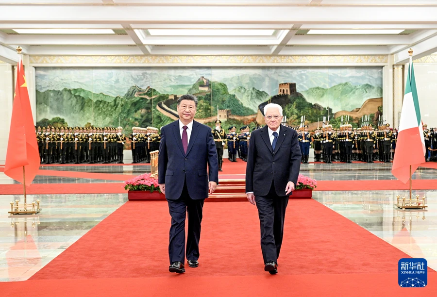 ??11月8日下午,国家主席习近平在北京人民大会堂同来华进行国事访问的意大利总统马塔雷拉举行会谈。这是习近平在人民大会堂北大厅为马塔雷拉举行欢迎仪式。新华社记者 殷博古 摄 ??新华社北京11月8日电(记者董雪、冯歆然)11月8日下午,国家主席习近平在北京人民大会堂同来华进行国事访问的意大利总统马塔雷拉举行会谈。 ??习近平指出,今年是中意建立全面战略伙伴关系20周年。双方发表了加强全面战略伙伴关系的行动计划,一致同意秉持历史悠久的丝路精神,推动双边关系进入发展新阶段。当今世界正在经历百年未有之大变局,中国和意大利作为两大文明古国,应该弘扬开放包容、兼容并蓄的传统,推动国际社会以对话化解分歧、以合作超越冲突,携手构建和合共生的美好世界。 ??习近平强调,互尊互信、互利共赢应该始终成为中意关系最鲜明的底色。双方应该充分发挥中意政府委员会和各领域对话机制作用,加强交往,夯实互信,继续理解和支持彼此核心利益和重大关切,做相互支持的战略伙伴。中意文化合作富有成果和活力,双方要继续密切人文交流,落实好新一轮文化合作执行计划,深化文化艺术、文物保护、经典著作互译、旅游、教育等领域合作,将文化遗产地合作打造为中意人文交流新亮点。双方要支持语言教学和青少年交流,共同培育更多新时代的马可·波罗。双方要坚持做相互成就的合作伙伴。中方愿扩大进口意大利优质产品,支持两国企业相互投资,继续推进科技环保、清洁能源、航天等领域合作。 ??习近平指出,当今世界正在经历深刻变化,中欧作为两大和平、建设性力量,坚持战略沟通、开放合作、交流互鉴的正确方向,有利于双方,有利于世界。中国将欧洲作为实现中国式现代化的重要伙伴,双方应该坚持合作共赢,妥善管控分歧,让中欧关系展现应有的成熟和稳定。中方愿同欧方加强合作应对全球性挑战,希望意方为此发挥积极作用。 ??11月8日下午,国家主席习近平在北京人民大会堂同来华进行国事访问的意大利总统马塔雷拉举行会谈。新华社记者 李学仁 摄 ??11月8日下午,国家主席习近平在北京人民大会堂同来华进行国事访问的意大利总统马塔雷拉举行会谈。新华社记者 殷博古 摄 ??马塔雷拉表示,我对2017年访华以及2019年接待习近平主席访意的情景记忆犹新。今年是马可·波罗逝世700周年,马可·波罗同中国的渊源是意中友好源远流长、两大文明交相辉映的缩影。当今世界正在经历深刻演变,人类社会需要加强团结互助,实现和谐共处。意中应该进一步深化文化、教育、语言教学、遗产地结好等人文领域交流合作,为推动东西方文明交流互鉴、促进人类文明进步作出新的贡献。意方坚定恪守一个中国原则,始终将中国作为重要合作伙伴,期待同中方一道,以庆祝意中建立全面战略伙伴关系20周年为契机,加强经贸、科技等领域合作,推动两国关系迈上新的高度。意方在许多重大问题上同中方立场相近,都反对?;ぶ饕?,倡导相互开放,主张加强建设性沟通与团结合作,共同应对各种挑战。意方愿同中方密切多边协作,为促进世界和平与稳定贡献意中两大文明的智慧。 ??会谈后,两国元首共同见证签署关于文化、科技、教育、世界遗产地结好等领域多项双边合作文件。 ??11月8日下午,国家主席习近平在北京人民大会堂同来华进行国事访问的意大利总统马塔雷拉举行会谈。这是习近平在人民大会堂北大厅为马塔雷拉举行欢迎仪式。新华社记者 申宏 摄 ??11月8日下午,国家主席习近平在北京人民大会堂同来华进行国事访问的意大利总统马塔雷拉举行会谈。这是习近平在人民大会堂北大厅为马塔雷拉举行欢迎仪式。新华社记者 丁海涛 摄 ??11月8日下午,国家主席习近平在北京人民大会堂同来华进行国事访问的意大利总统马塔雷拉举行会谈。这是习近平在人民大会堂北大厅为马塔雷拉举行欢迎仪式。新华社记者 李学仁 摄 ??会谈前,习近平在人民大会堂北大厅为马塔雷拉举行欢迎仪式。 ??天安门广场鸣放21响礼炮,礼兵列队致敬。两国元首登上检阅台,军乐团奏中意两国国歌。马塔雷拉在习近平陪同下检阅中国人民解放军仪仗队,并观看分列式。 ??11月8日下午,国家主席习近平在北京人民大会堂同来华进行国事访问的意大利总统马塔雷拉举行会谈。这是习近平和夫人彭丽媛同马塔雷拉和女儿劳拉合影。新华社记者 申宏 摄 ??当晚,习近平主席和夫人彭丽媛在人民大会堂金色大厅为马塔雷拉总统和女儿劳拉举行欢迎宴会。 ??王毅参加上述活动。