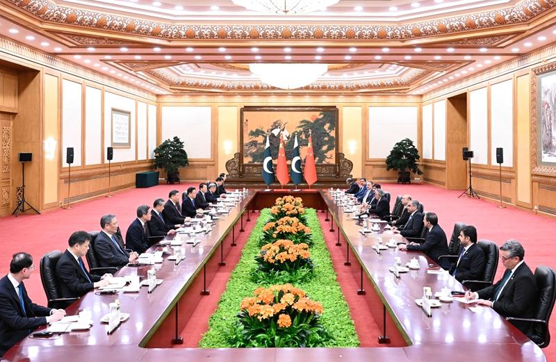 习近平指出,中国和巴基斯坦是铁杆朋友和全天候战略合作伙伴。历久弥坚的中巴传统友谊由两国老一辈领导人亲手缔造,是两国和两国人民的宝贵财富。近年来,双方坚定相互政治支持,保持密切高层交往,深入推进中巴经济走廊建设和各领域合作,树立了国与国关系典范。中方愿同巴方在各自现代化道路上携手前行,加快构建新时代更加紧密的中巴命运共同体,更好造福两国人民,为地区和平、稳定、繁荣作出更大贡献。