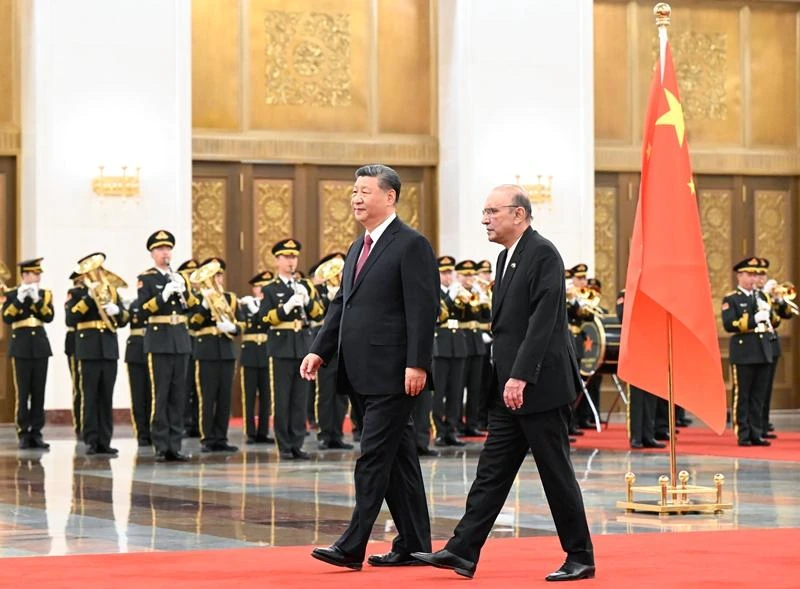 扎尔达里表示,巴基斯坦和中国是亲密邻邦,更是全天候的好朋友、好伙伴。巴中友谊历经风雨,两国人民的心始终紧紧相连。无论形势如何变化,巴方都将毫不动摇同中方站在一起。巴方感谢中方为巴经济社会发展提供无私帮助,愿学习中国成功经验,推动中巴经济走廊和各领域合作高质量发展,助力巴基斯坦实现工业化和现代化。在习近平主席英明指引下,中国在国际事务中发挥越来越大的引领作用,日益成为维护世界和平、稳定、繁荣的重要力量。巴方愿同中方密切配合,坚持多边主义,维护自由贸易,促进两国和广大发展中国家的共同利益。