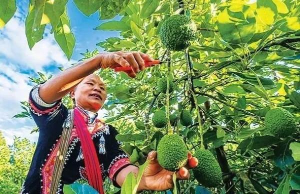 孟连农户在采摘牛油果。新华社记者 江文耀 摄