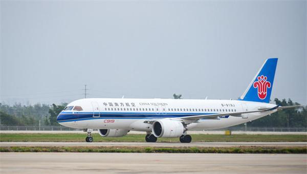2024年12月11日,由C919执飞的中国南航CZ6786航班在??诿览脊驶〗德?,国产大飞机C919在海南的商业飞行“首秀”顺利完成。新华社记者 杨冠宇 摄