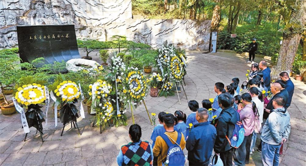 群众缅怀人民音乐家聂耳。