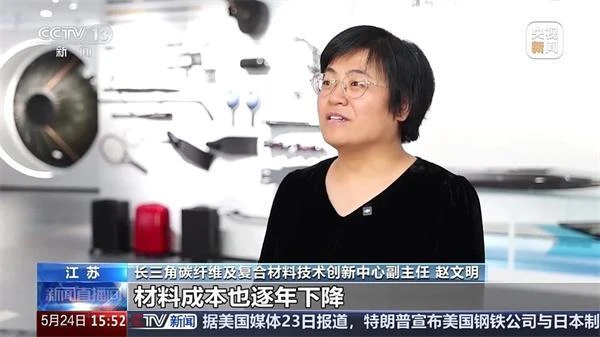 长三角碳纤维及复合材料技术创新中心副主任 赵文明:近十年来,随着碳纤维国产化,材料成本也逐年下降,(但也)出现质量一致性不够好、数据积累不足、材料品类过于繁杂、高端材料需要提升等问题。