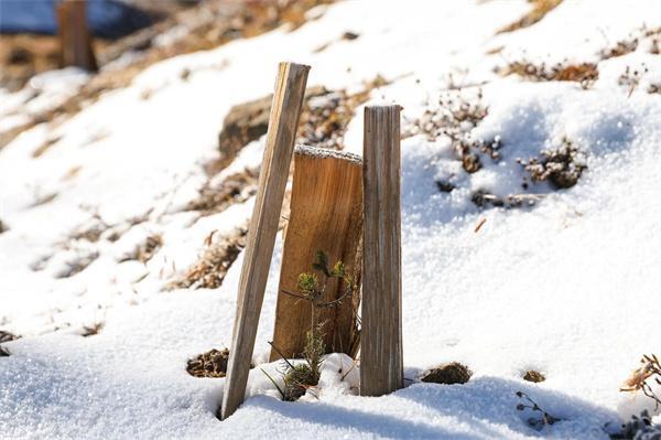 位于香格里拉市洛吉乡海拔3600米处,一场初雪刚落,群山覆上薄雪。彝族森林管护员阿鲁比哈正俯身查看树苗情况,他轻轻拂去苗木上的积雪说道:“过了这个冬天,这批树苗就能真正扎下根了。”
